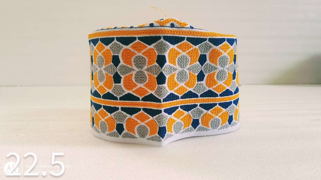 We have designs in our machine we can also make custom-designed Kufi Topi Naalein Islamic topi.